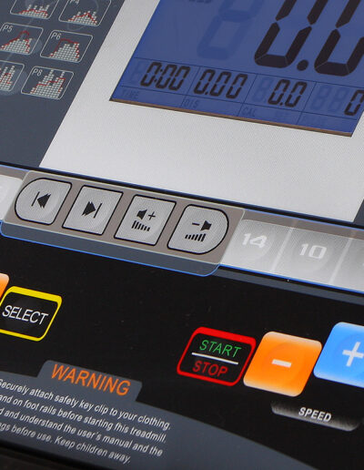Podsvietený a prehľadný displej s intuitívnym ovládaním, zabudovanými programami, robí tréningy efektívnejšie. Samozrejmosťou je aj bezpečnostný kľúč pri behu, ktorý vypne pás do 2 sekúnd, v prípade potreby.
